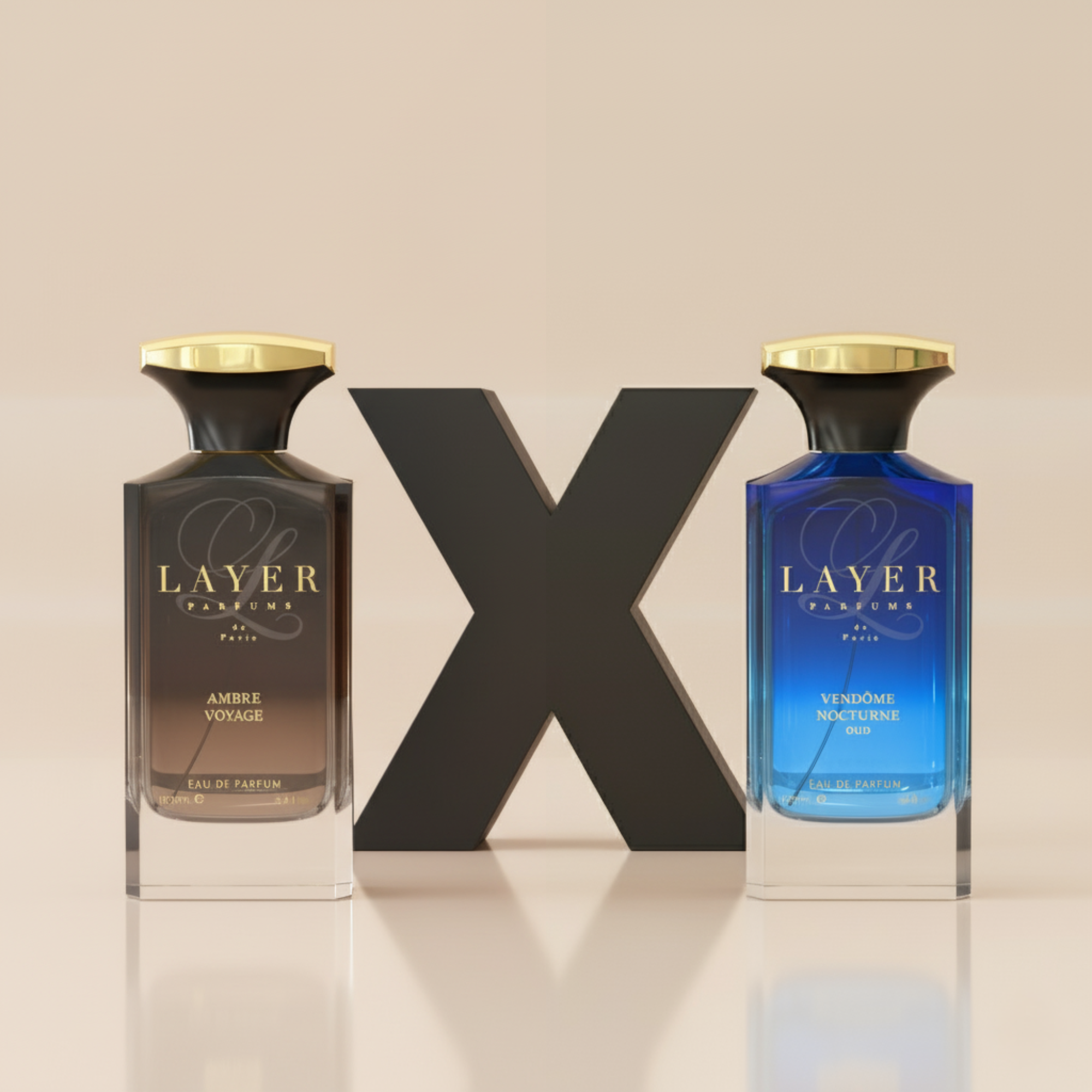 Layering is the deliberate combination of two perfumes to create a scent that is uniquely yours. By pairing fragrances with different olfactive profiles, such as smoky with citrus, floral with amber, you shape how the perfume develops on your skin.